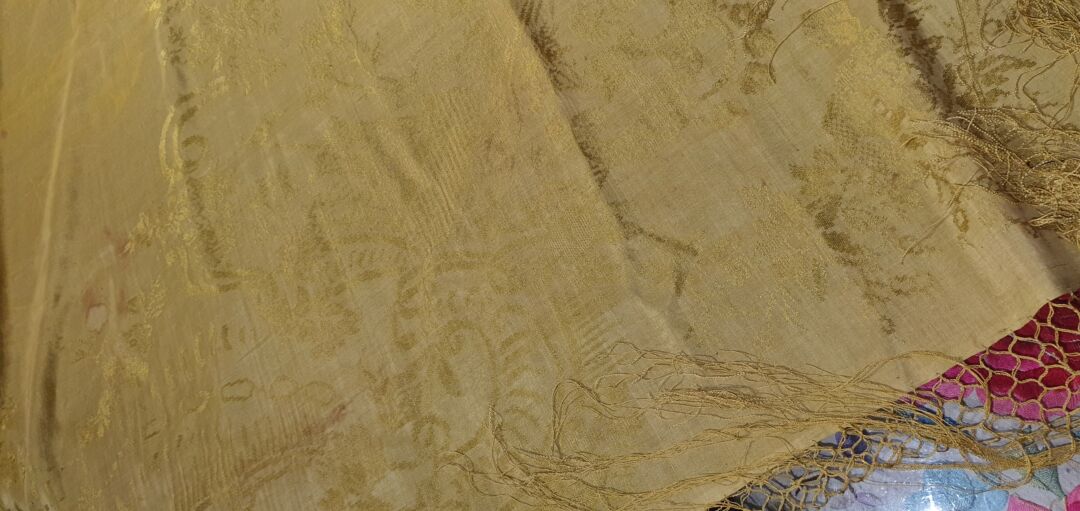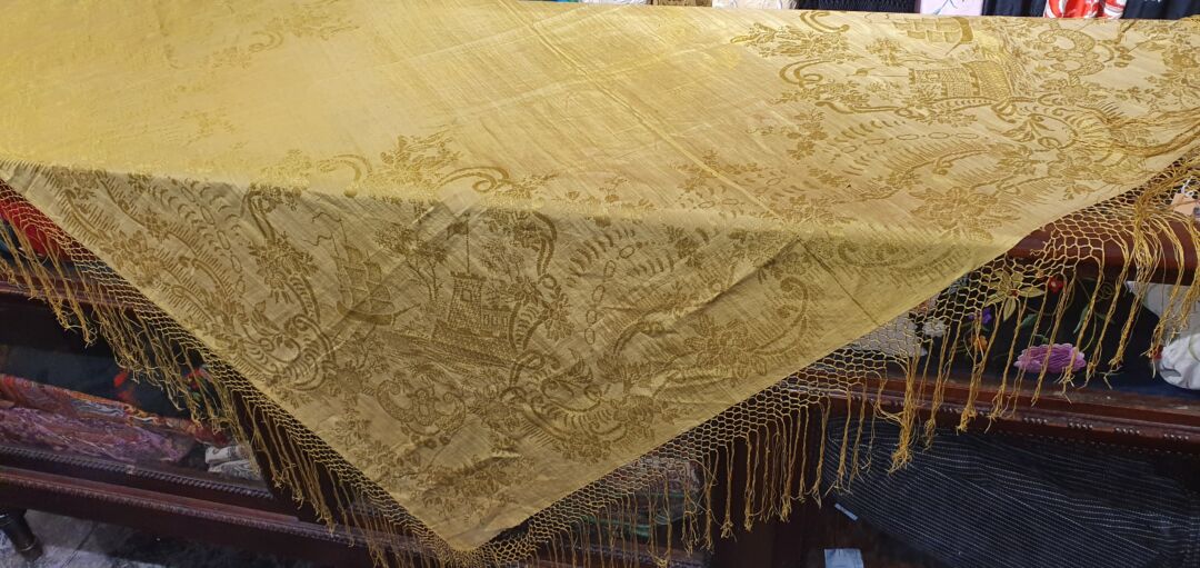 Mantón antiguo isabelino adamascado color pistacho