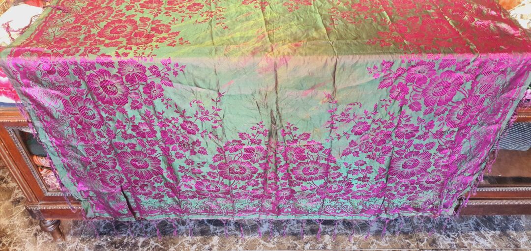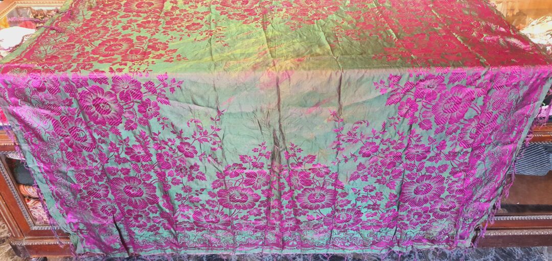Maravilloso mantón antiguo de seda de gro. Buena conservación para su época