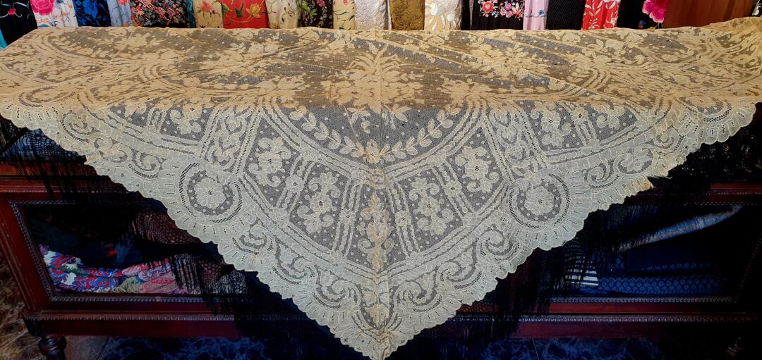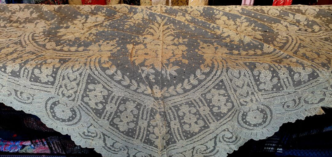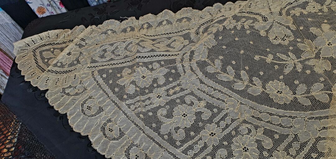 Mantilla antigua de tres picos, Cambray