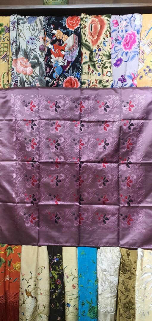Pañuelo coronario de seda tornasolada, adamascada y espolinada