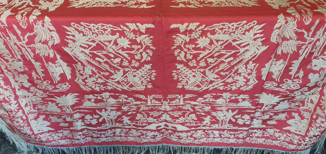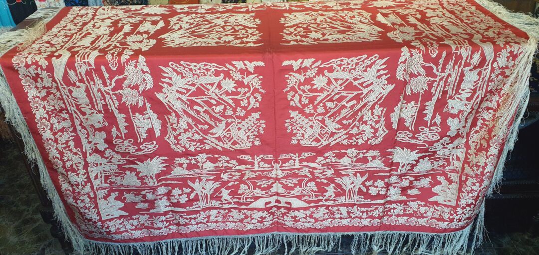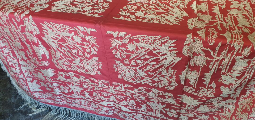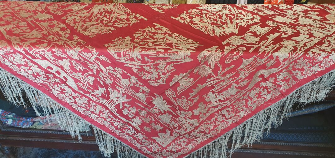 Mantón antiguo de seda, tipo gro